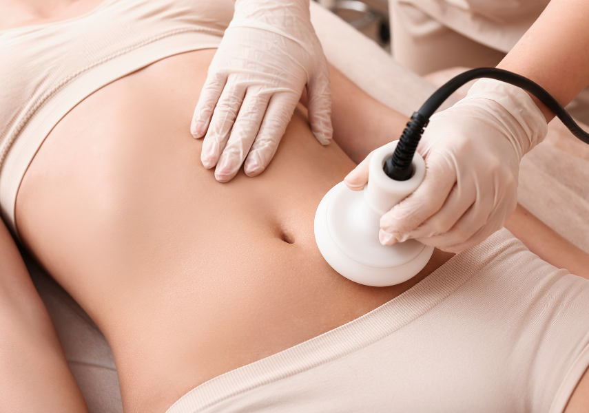 超音波で脂肪細胞に気泡を発生させ、破裂させて脂肪を乳化(分解)させる。固く広範囲な皮下脂肪、セルライト。施術中、骨伝導により「キーン」という金属音が発生する(痛みではない)。苦手な顧客への事前説明が必要。