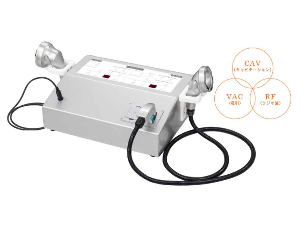 キャビテーション+ラジオ波、バキューム+ラジオ波のWハンドピースを搭載。2種類の複合トリートメントを同時に行える、効率性と機能性を両立したオール・ジャパン・メイドのハイスペックマシンです。